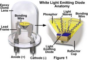 لامپ LED دارای دو نیمه هادی مثبت و منفی است، به وجود آمدن اختلاف پتانسیلی جریان برق در این نیمههادیها باعث میشود نیمه هادی سمت چپ تحریک شودند و الکترونها برای رها کردن خود از این وضعیت به سمت نیمه هادی مثبت حرکت می کنند و پس از رسیدن به محل برخورد نیمه هادی مثبت و منفی نور تولید میگردد.